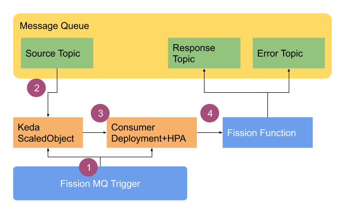 - The function consumes the message and returns the response to deployment pods, which puts the response in response topic and errors in error topic as may be applicable.